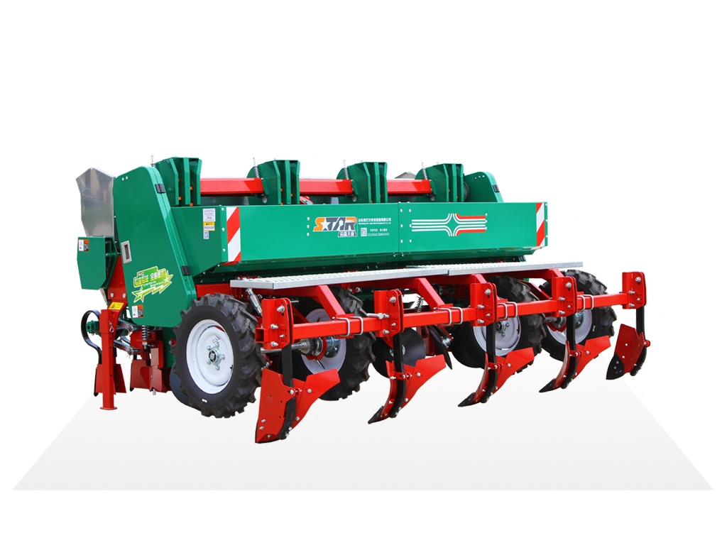 整机由拖拉机装置挂接在拖拉机的后端。作业时拖拉机背扶机器前进,由机器上的地轮通过变速链轮完成排种,同时起垄器起垄,控制种植深度与垄形。此外,该机型还可配选施肥装置和施药装置。