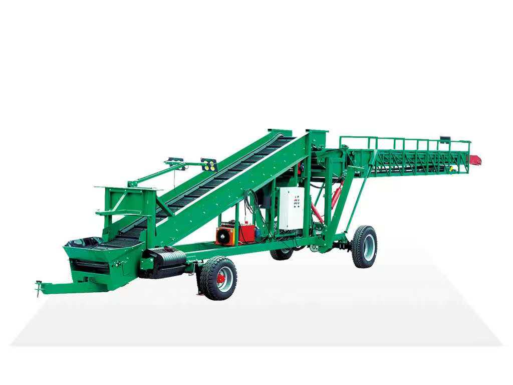 5SD-60马铃薯堆垛机主要由前端输送装置、后端输送装置、前支撑桥、后转向装置、摇摆支撑架、接收料斗、液压系统、电气系统等部件组成。